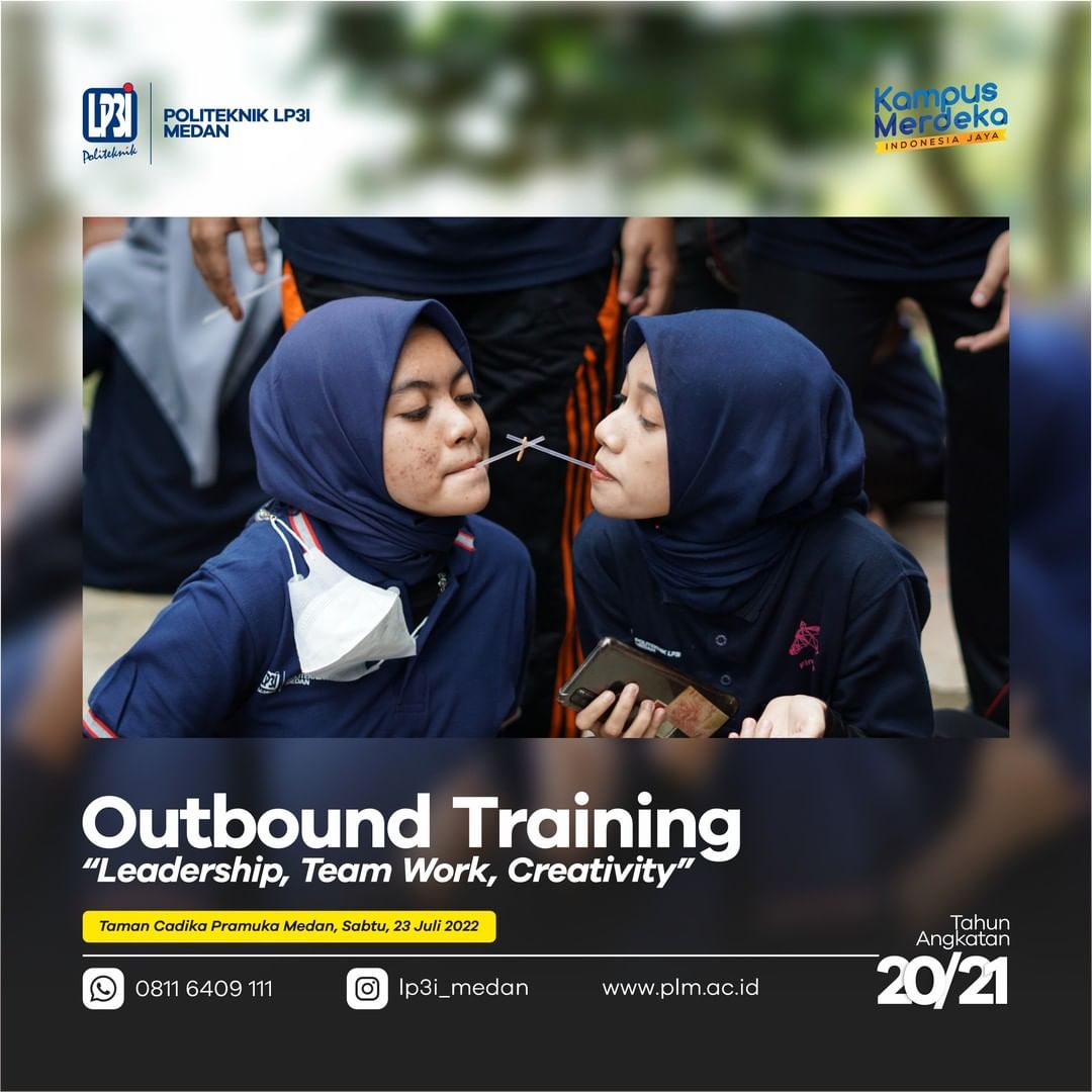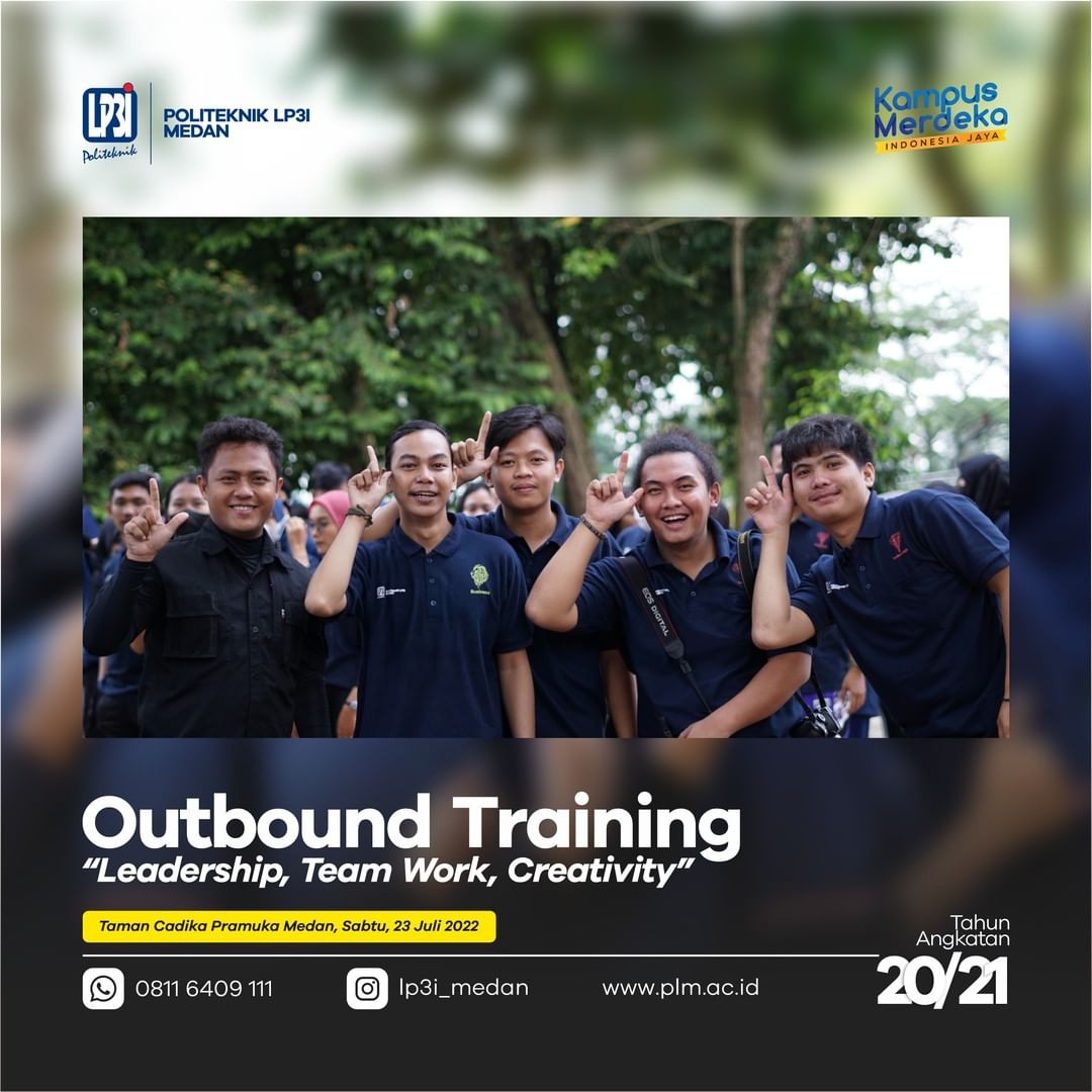 Outbound Training tahun 2022 terlaksana di Taman Cadika Pramuka Medan, pada tanggal 23 Juli 2022. Kegiatan ini dihadiri dan dibuka oleh pimpinan Politeknik LP3I Medan yakni Ibu Ruri Aditya Sari, M.Sc (Direktur), Bapak Iswandi Idris, M.T (Wadir Akademik) dan Ibu Maulidina, S.P., M.M (Wadir Non-Akademik)
